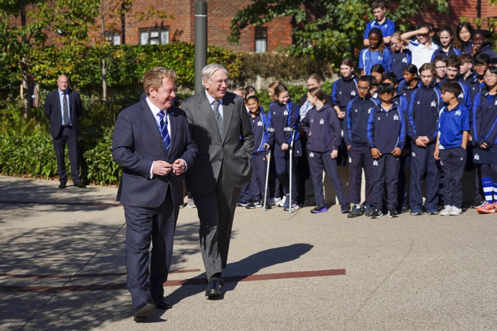 We were honoured to welcome His Royal Highness The Duke of Gloucester KG GCVO on Tuesday 30 September to Surrey. The Duke started his day in Surrey with a visit to Reigate Grammar School 350th anniversary celebrations. The visit was shaped by the six core values underpinning the 350th celebrations: *BeKind *BeGiving *BePartners *BeGreen *Be Global and *BeInspired and these were showcased though musical performances, art displays, and conversations with students. Thw Duke then planted a tree symbolising the 3,500 trees being planted through their *BeGreen pledge.